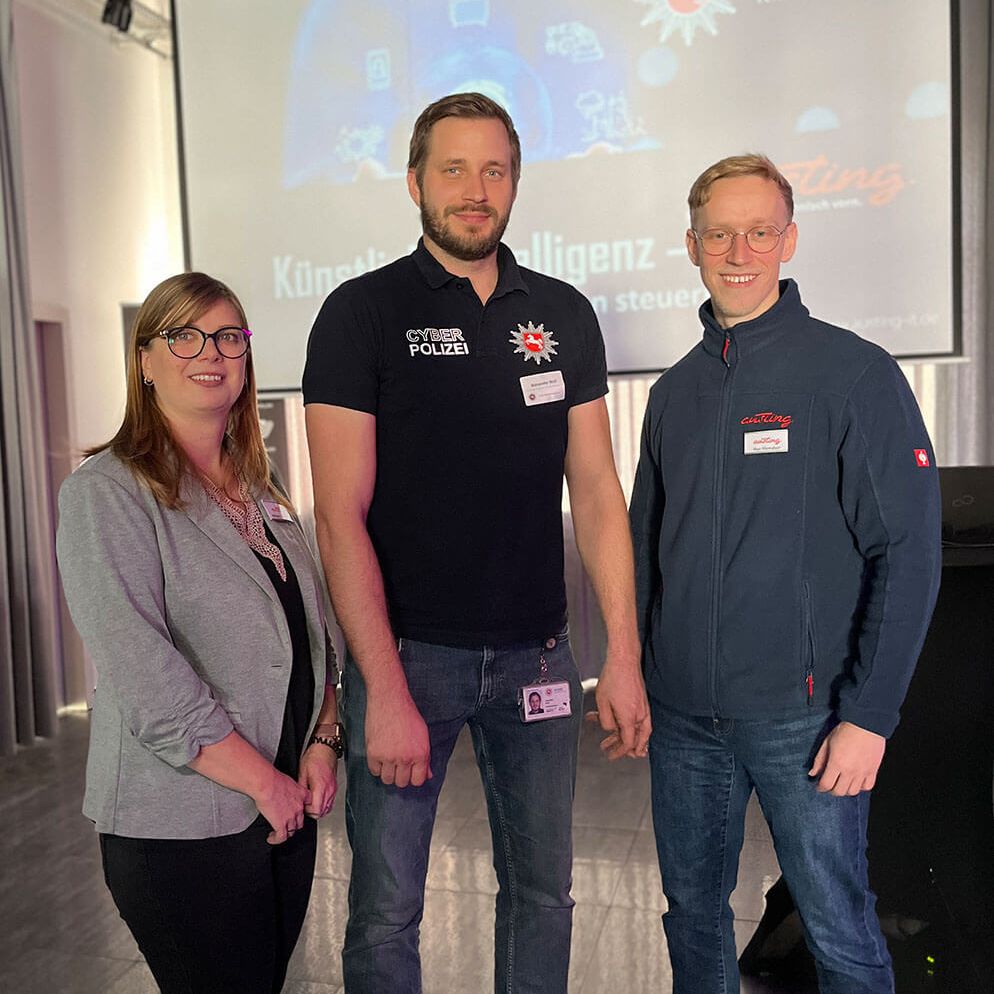 Über 60 Unternehmerinnen und Unternehmer aus der Region Vechta diskutierten gemeinsam mit dem LKA Hannover und der Große Austing GmbH über die gewaltigen Chancen von Künstlicher Intelligenz – und darüber, wie Cybersecurity und Datenschutz zur Voraussetzung für nachhaltigen Geschäftserfolg werden.