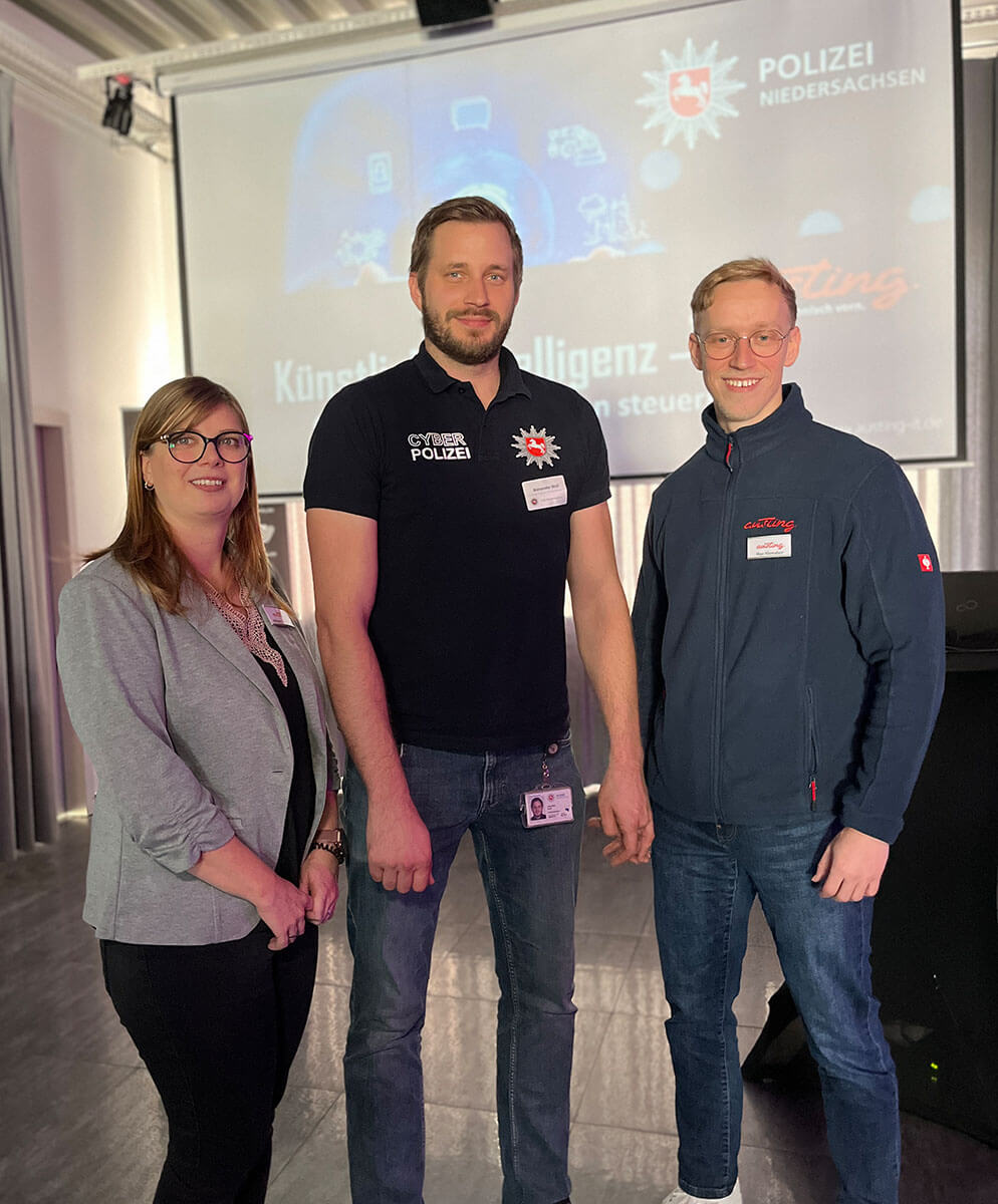 Über 60 Unternehmerinnen und Unternehmer aus der Region Vechta diskutierten gemeinsam mit dem LKA Hannover und der Große Austing GmbH über die gewaltigen Chancen von Künstlicher Intelligenz – und darüber, wie Cybersecurity und Datenschutz zur Voraussetzung für nachhaltigen Geschäftserfolg werden.