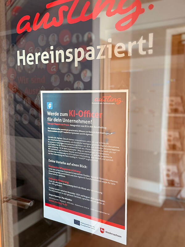 Gestalte die digitale Zukunft deines Unternehmens aktiv mit und sichere dir die entscheidende Kompetenz, um Künstliche Intelligenz gewinnbringend einzusetzen. In unserer 6-wöchigen Intensivschulung bilden wir dich zum zentralen Ansprechpartner und Treiber für KI-Themen in deinem Betrieb aus. Dieses Programm ist mehr als nur eine Schulung – es ist dein praxisnaher Weg zur nachhaltigen KI-Kompetenz. Wir verzichten auf trockene Theorie und konzentrieren uns auf die tatsächliche Einführung und Nutzung von KI in deinem Arbeitsalltag. Alle Inhalte sind speziell auf die Anwendung mit Mein Austing KI / InnoGPT zugeschnitten.